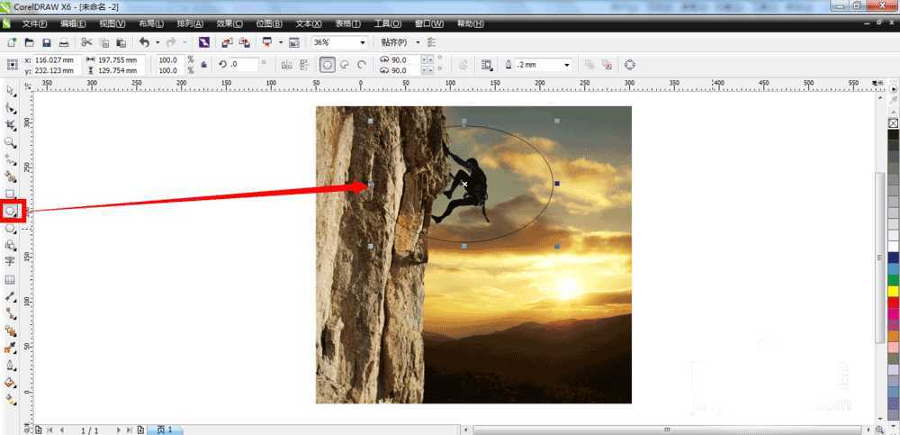 2、比如,我们想要把这张图片裁剪成为椭圆形的图片。先使用椭圆形工具,在图片上方绘制一个椭圆形