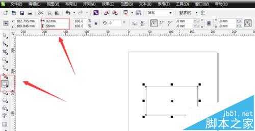 2、用矩形工具绘制一个矩形,并设置高宽为,92*56mm