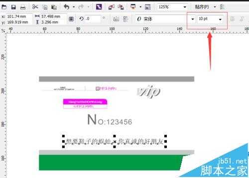 10、在旁边打一个VIP,用挑选工具选中,连按两下,这时候交上的箭头是用来旋转用的,上方的箭头是用来变形用的,我们用上面那个。我们再复制一个VIP,填充白色。再复制一个,然后填别的色。按加号复制哦。如图。