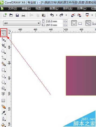 2、如图所示,用选择工具选中箭头所指的这个图形。