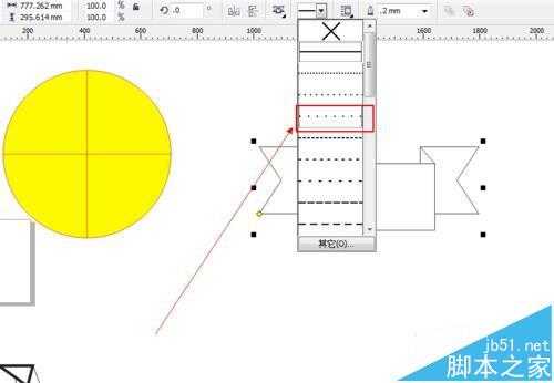 5、如图所示,在弹出的下拉列表菜单中,我们点击箭头所指的这个虚线类型。