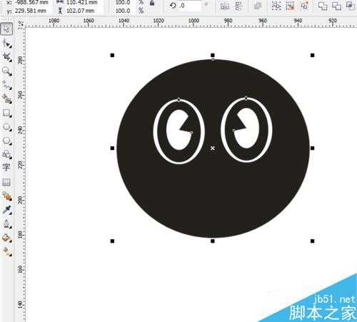 3、这样我们就把一只眼睛就绘制好了,那么还有一只眼睛就简单了,我们可以把绘制好的眼睛,群组一下,快捷键【ctrl+g】然后我们按住这只眼睛横向拖动,松开点击鼠标左键,我们就会看到一个一模一样的眼睛出现了,效果我们见下图所示;