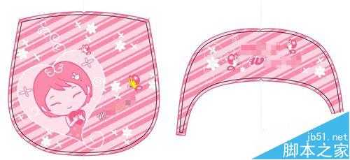 10、最终效果如下,这里主要是看图案的大小位置跟裁片的大小形状适不适合,裁片内轮廓跟外轮廓之间的部分是出血位,成品做出来后是会被车进去即裁掉的。所以不规则的文字跟图案都要考虑下其位置,不能放在靠边上。最终拿去做菲林的最好不要按裁片的形状做,而是做成矩形,这样菲林才能循环利用套在别的版上面也适用。如有疑问欢迎交流。