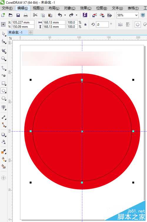 2、选择工具箱中的椭圆形工具,或者直接按快捷键F7,选择椭圆工具后,再按shift+Ctrl键不放,鼠标放在两条参考线的中心,由中心向外可以画出一个正圆。
