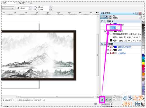 接着,小伙伴们在“对象管理器”界面底下点一下第一个类似于纸张铺起来的图案按钮“新建图层”,就会看到刚才的“图层1”上面出现了一个“图层2”。