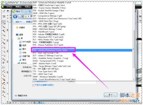 在打开的这个“导出”窗口上,大家可以看到一栏“保存类型”,如果上面默认的格式不是小伙伴们需要的psd格式的,就在它的右边点一下那个小小的倒三角形按钮。