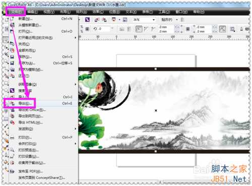 前面弄好以后,小伙伴们就点一下cdr软件界面左上角的“文件”,再在下拉列表里面选择那个“导出”。
