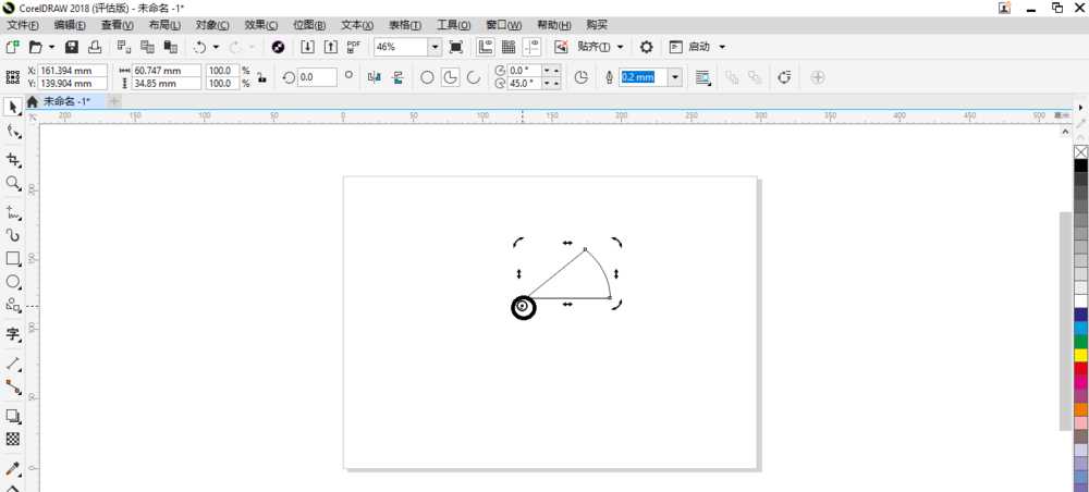 2、然后在工具栏中单击“饼形”按钮并调整角度。