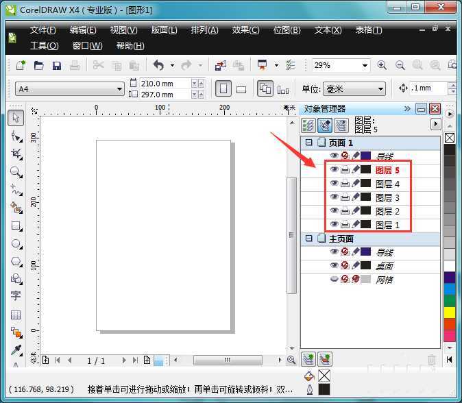 2、打开cdr之后在对象管理面板里找到新建图层选项,如图所示: