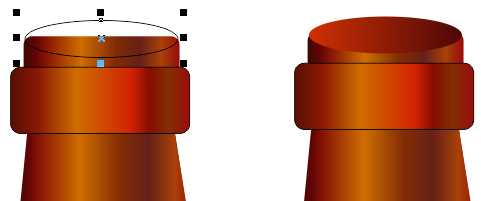 11、绘制瓶盖图形 选择“椭圆形工具”,在瓶颈图形上方绘制一个椭圆,填充渐变颜色,图像效果如图所示。
