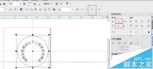 7、框选文字和图形。点击属性栏的对齐与分布。选择对齐方式为居中对齐。如图所示。或者点击键盘字母C,E也是一样的。