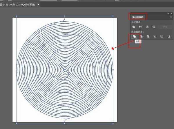 5、打开路径查找器,全选对象,点击分割命令。取消编组,用套索工具选中要删除的部分,按DELITE。