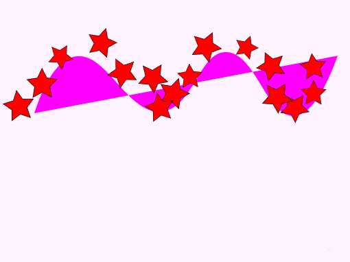 3、打开画笔工具,应用其中自己新建的散点画笔,比如红色填充的五角星图案,即可看到延曲线路径出现了一系列大小相同的五角星图案;