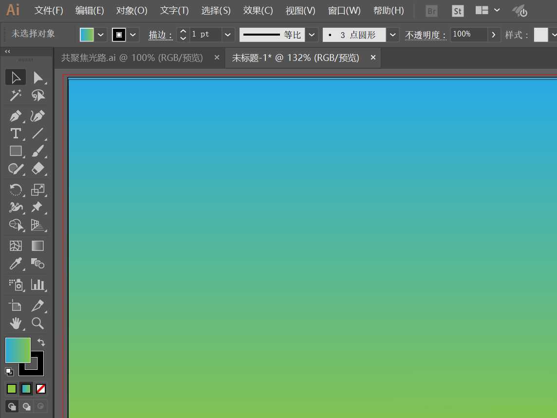 1、双击运行AI,新建一个空白画板,并绘制一个画板大小的矩形,设置好看的渐变填充色以作背景;