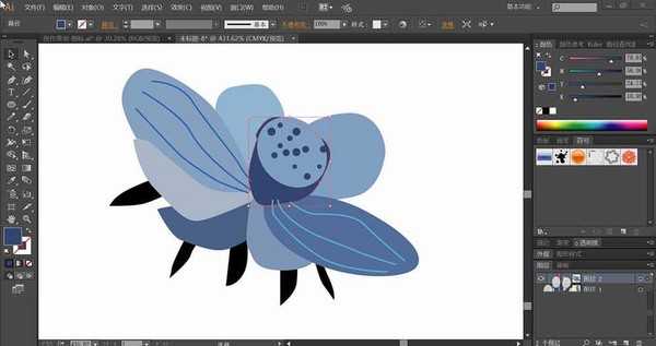 2、使用蓝灰色、蓝白色、深蓝色、黑色搭配填充花瓣,让不同形状的花瓣有着不同的蓝色调。