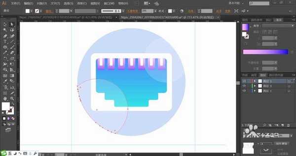 5、接着,我们再来画一画局域网图标,这个图标的创意就是绘制出一个光纤结头的截面路径,使用矩形、圆形、钢笔工具画出截面当中的细节路径。