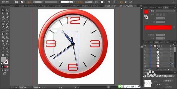 5、使用黑色填充钟面的边缘刻度线,再用红色的渐变填充钟面的数字。