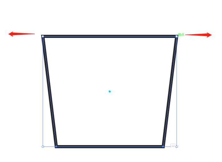 3、将矩形上面的两个点向外拖动,做成一个梯形的形状