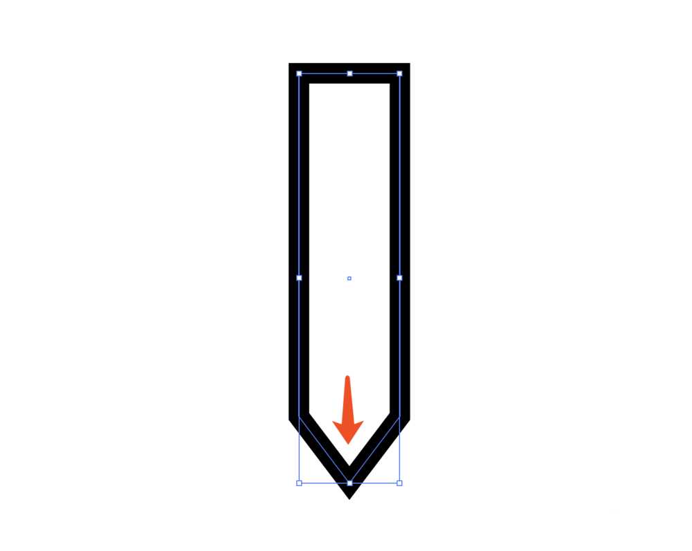 5、使用直接选择工具,选中新添加的锚点,向下拉动成笔尖的样子
