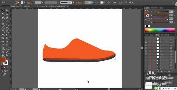 2、用桔红色填充这个男皮鞋的鞋面的路径,让整个男皮鞋的色调保持桔红色的状态。