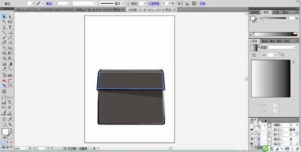 1、先用钢笔画出一个四边形,这就是黑皮包的主体路径,我们填充灰白色,再描绘出黑皮包的边缘,我们用黑色的渐变填充。