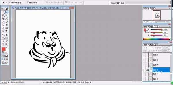 7、我们给厨师做一个阴影的图层效果,点开白色的背景图层,完成中年厨师头像设计。