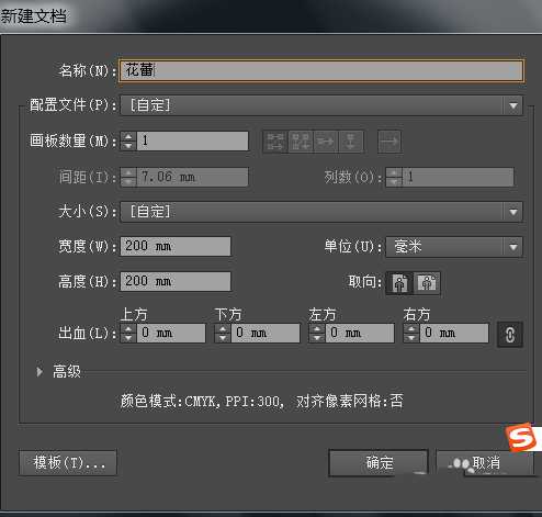 1、打开软件,新建文档,命名为花蕾,确定,如图。