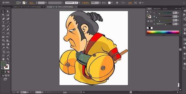 7、使用橙黄色与橙红色搭配完成人物的服饰所有的路径填充,使用网格工具点击一下所有的高光区域,完成前景色的渐变效果,铁锤将图片设计完成!