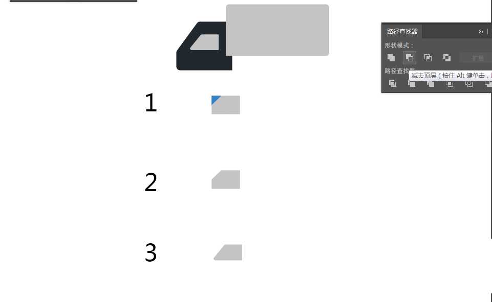 2、继续用矩形工具绘制一个矩形,用钢笔工具画一个三角形,用路径查找器中的,“减去顶层”,得到一个车头