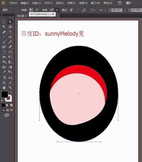 6、我们再来调整下脸部,选择工具箱中的直接选择工具,选中脸部下方的结点将其左移一点,然后调整控制线,将控制线右边上移一点,脸部基本上就可以了。