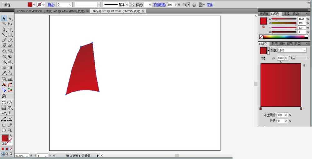 1、使用钢笔工具画出沙滩伞中的一片伞布,我们用橙红色的渐变填充。