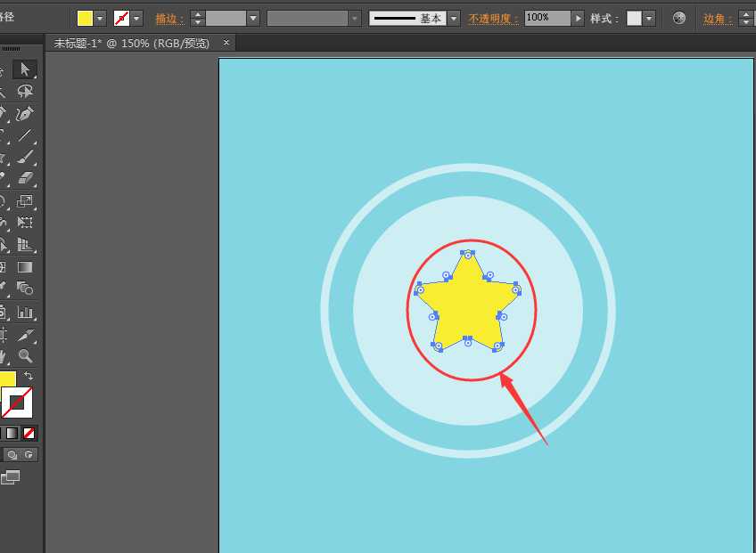 4、然后,开始在中间绘制星形了,利用星形工具做,然后填充一个黄色