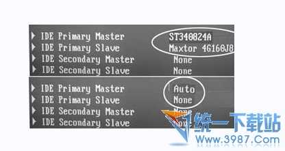 对于两块都有主分区的硬盘来说,可在BIOS设置中将主硬盘设置为AUTO,将从硬盘设置为None(如图5 )。这样在开机进入Windows后就可以避免“盘符交错”的问题,同样这个办法对于Linux操作系统也适用