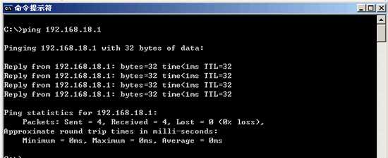 在例子中"bytes=32"表示ICMP报文中有32个字节的测试数据,"time=4ms"是往返时间。 Sent 发送多个秒包、Received 收到多个回应包、Lost 丢弃了多少个Minmum 最小值 、MAXimun 最大值、Average 平均值。所在图上来看,来回只用了4MS 时间,lost =0 即是丢包数为0,网络状态相当良好。 (更详细可以使用-n参数 “ping –n 100 IP地址” ping 100次。查看 Sent Received Lost Minmum MAXimun Average 这些值的变化。)