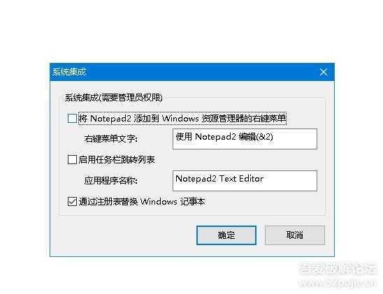 代替系统记事本方法:管理员运行身份运行-设置-高级设置-系统集成-通过注册表替换Windows记事本