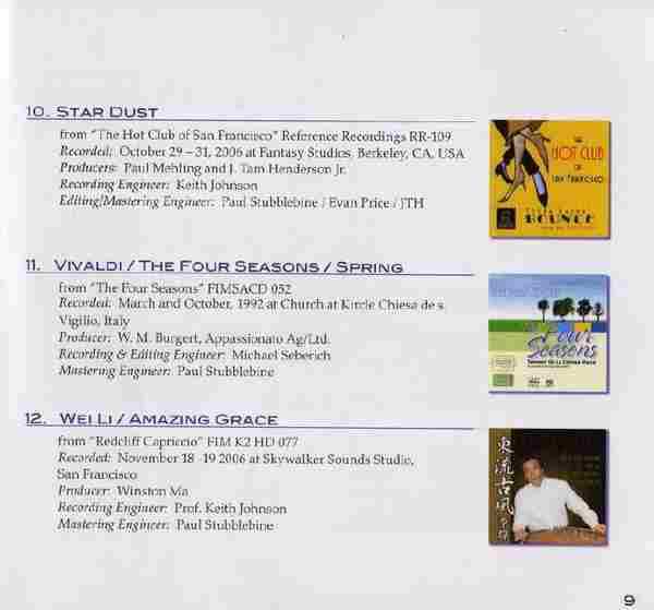 16首精心挑选的发烧音乐,包含交响乐、器乐、人声等。其中每一首的音效都好到无法形容,如果你的器材夠级别,其真实的现场感和宽阔立体音场,一定会带給你全新的听觉感受!