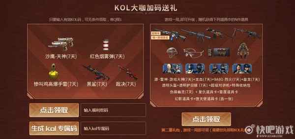 玩家在活动页面中只要输入有效KOL码,可无条件领取,单Q限1。同时该礼包只要玩家游戏一局即可升级礼包。