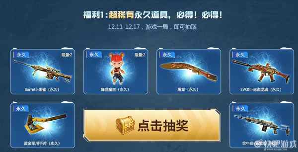 玩家只需在12月11日至12月17日游戏一局,即可获取随机超稀有永久道具。