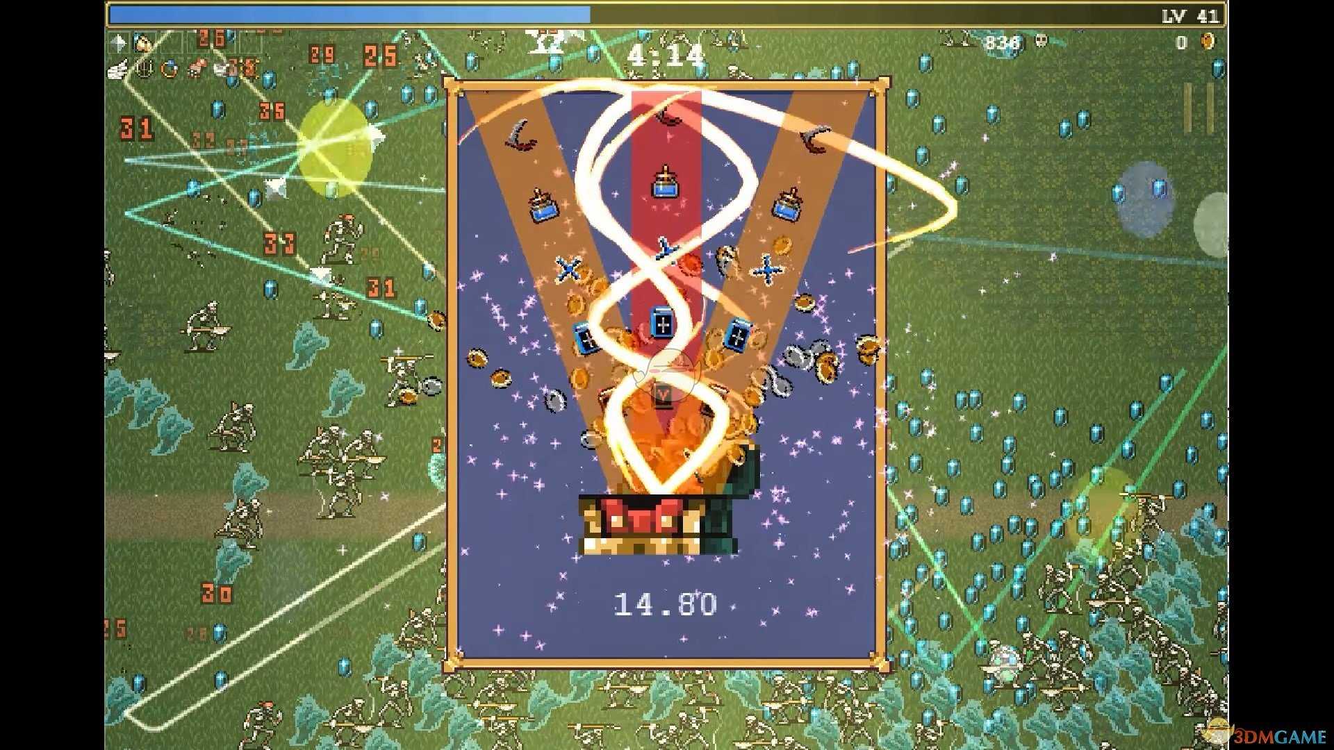 需要注意的是,在前期除了鞭子外的其它武器如果级别不高,优先升复制器和蜡烛更有用。多利用鞭子呈螺旋上升的特性清怪。