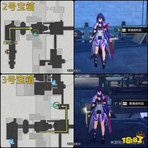 再回到传送点,顺着主路前进,2号和3号宝箱都没有难点。