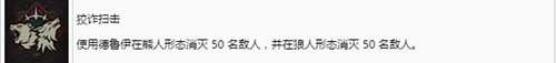 10、狡诈扫击:使用德鲁伊在熊人形态消灭 50 名敌人,并在狼人形态消灭 50 名敌人