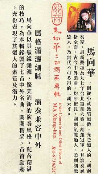 龙音香港版-马向华二胡独奏专辑[WAV+CUE].rar: https://url27.ctfile.com/f/9388027-948100290-c26fbb?p=559675(访问密码: 559675)