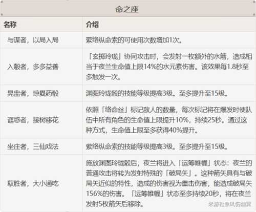 六命:使用“速切”命座后,开启Q技能后,夜兰的普通攻击会变成更强的“破局失”,在20秒内可射出5次。