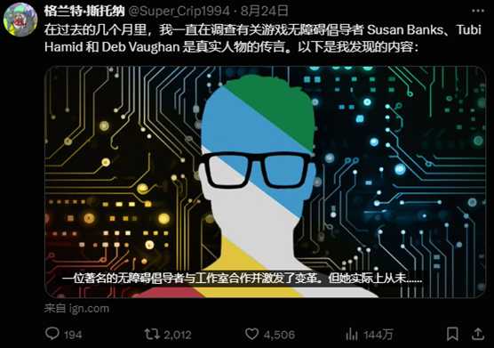 上个月,一位无障碍行业人士在IGN上发表了一篇文章,通过采访、资料核实以及与相关组织的对话,从多个角度揭露了苏珊“从未存在过”的事实。